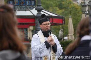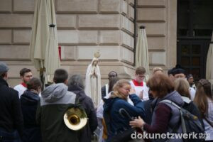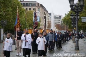 Am 4. Oktober 2025 organisierte die katholisch-traditionalistische Priesterbruderschaft St. Pius X. eine Prozession anlässlich des Fatima-Sonntags durch die Frankfurter Innenstadt. Startpunkt war am Opernplatz. Wie in den vergangenen Jahren zogen etwa 200 TeilnehmerInnen über die Hauptwache und den Domplatz bis zur Leonhardskirche. Die Prozession verlief in zwei geschlechtergetrennten Blöcken: Männer vorne, Frauen hinten, in der Mitte wurde eine bekrönte Marienfigur getragen und es lief eine Blaskapelle.